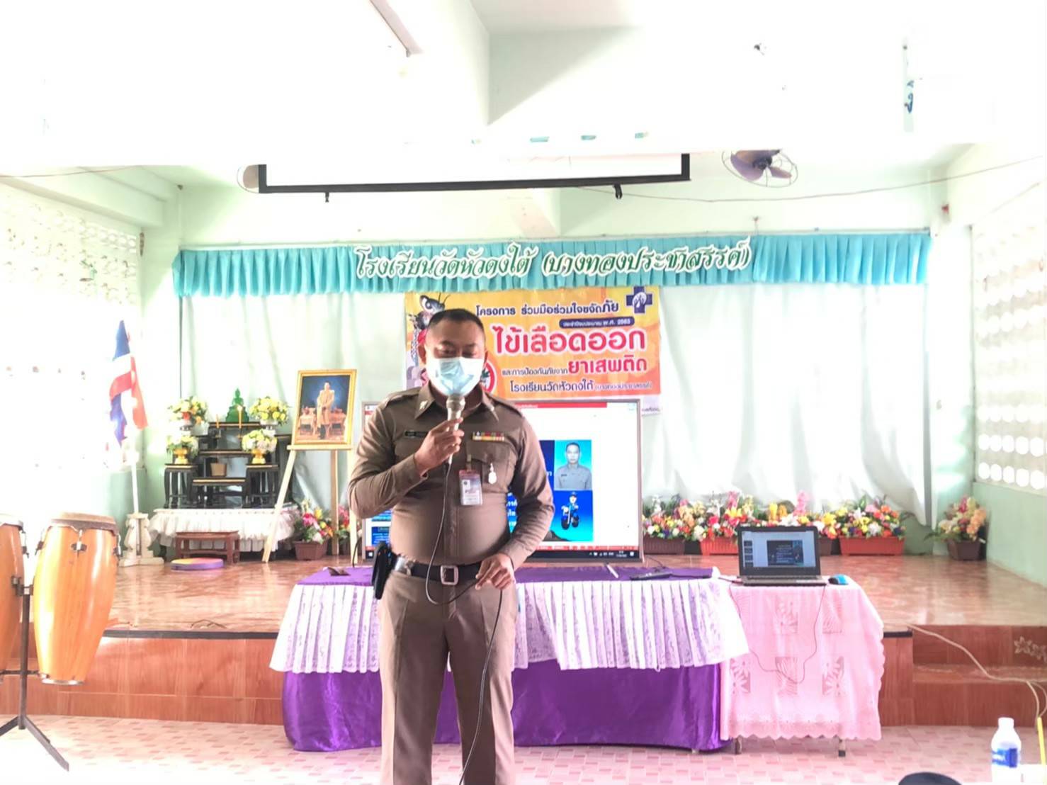 ด.ต.พลธร เจิมจันทร์ ผบ.หมู่(สส.)สภ.เก้าเลี้ยว มาประชาสัมพันธ์ให้ความรู้เรื่องยาเสพติดให้กับเด็กนักเรียนโรงเรียนหัวดงใต้ ประจำปี ๒๕๖๖ ณ โรงเรียนวัดหัวดงใต้(บางทองประชาสรรค์)โดยมีวัตถุประสงค์เพื่อให้เด็กได้รับความรู้และความเข้าใจภัยอันตรายของพิษยาเสพติด