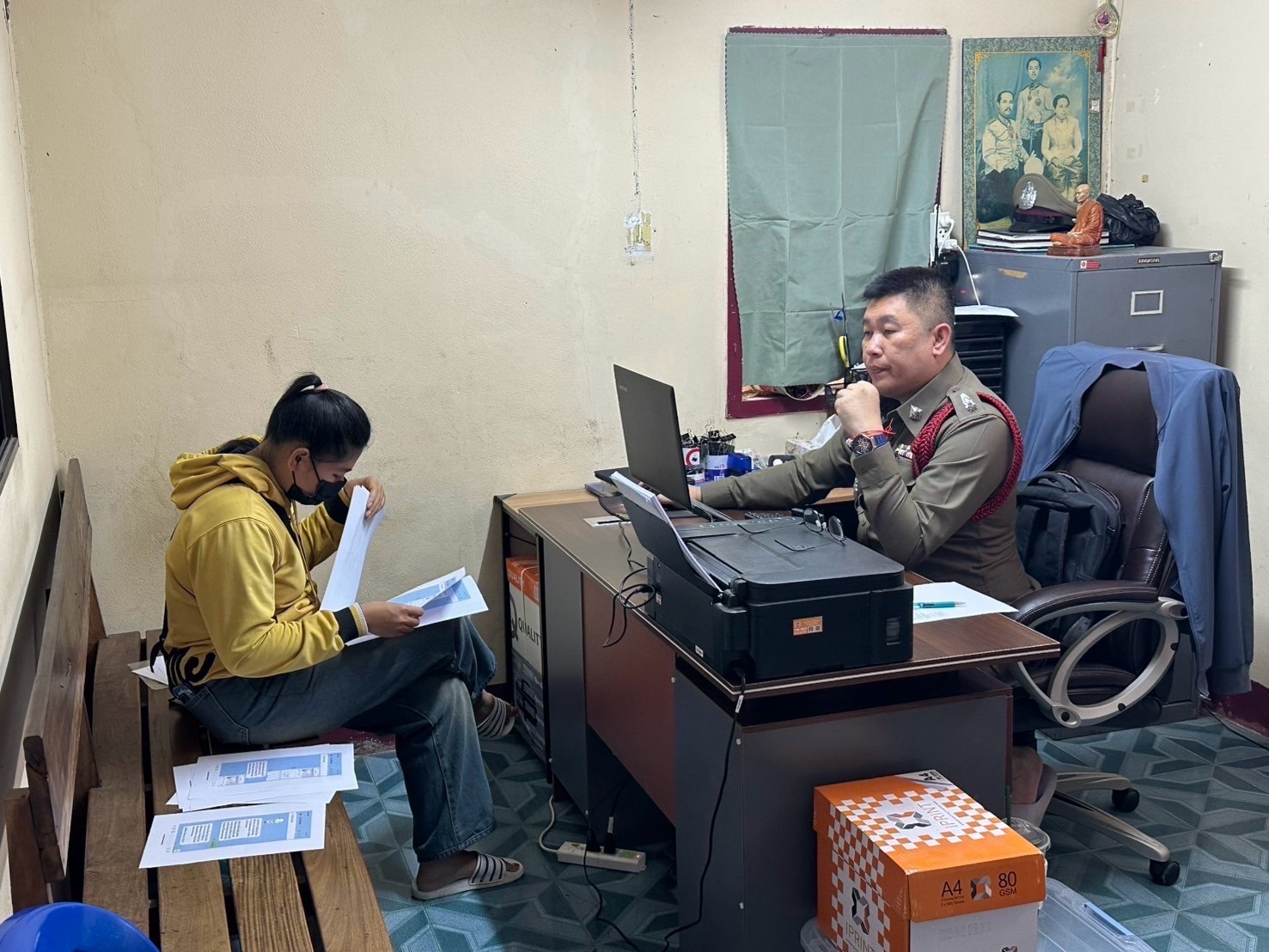 พ.ต.ต.ศุภวัฒน์ ปรีชาชาญ สว.(สอบสวน) สภ.เก้าเลี้ยว ได้เรียกผู้เสียหาย มาเพื่อดำเนินการสอบสวนและรวบรวมพยานหลักฐาน โดยมีผู้เสียหายนำพยานหลักฐานเพิ่มเติมมาให้พนักงานสอบสวน เพื่อดำเนินการสอบสวนต่อไป